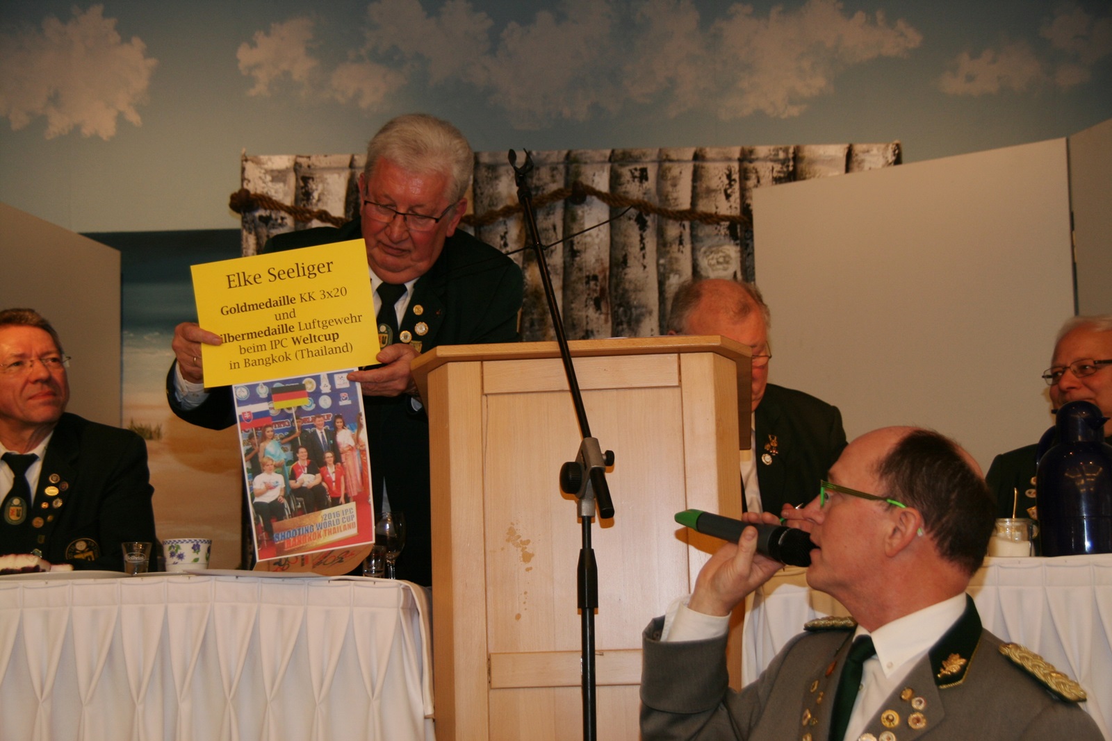 Die Namen der Schützinnen und Schützen, welche das Meisterschützenabzeichen errungen hatten, sowie die Namen der jenigen welche den Landesrekord mit Gewehr, Pistole oder Bogen eingestellt hatten, verlas Sportleiter Siegfried Brockmann.