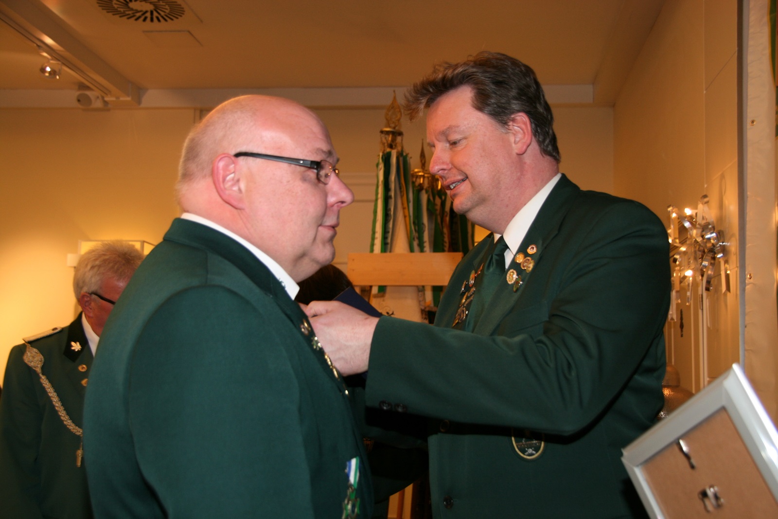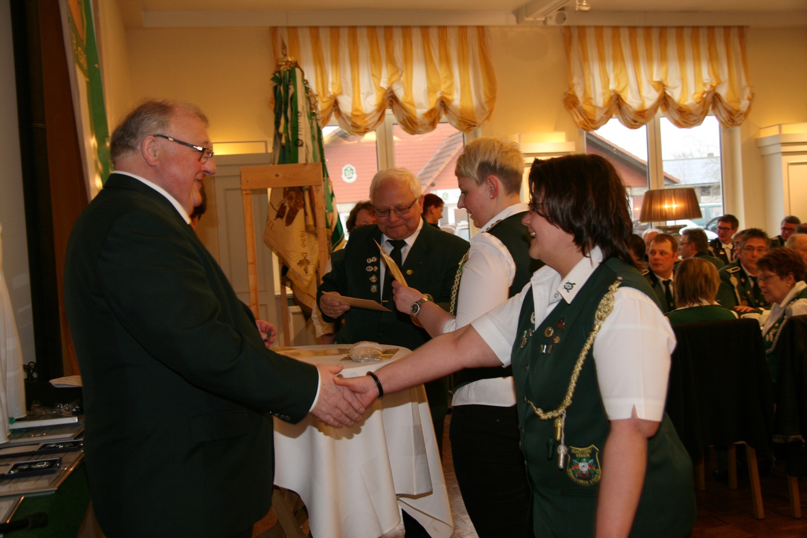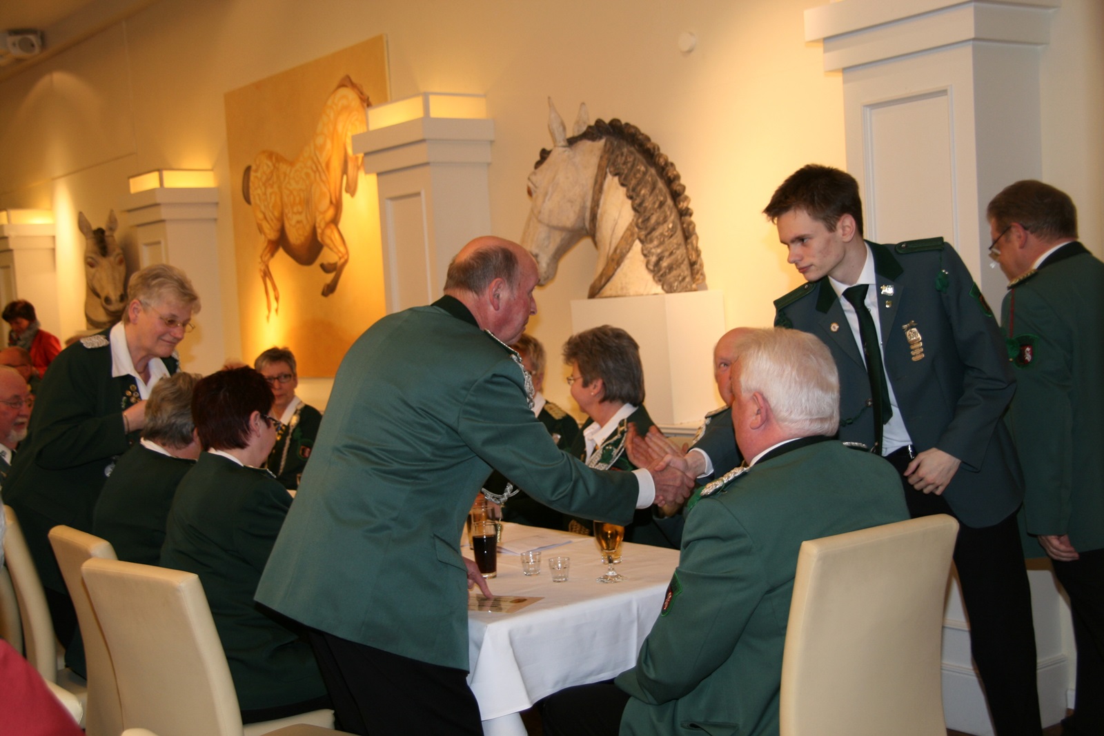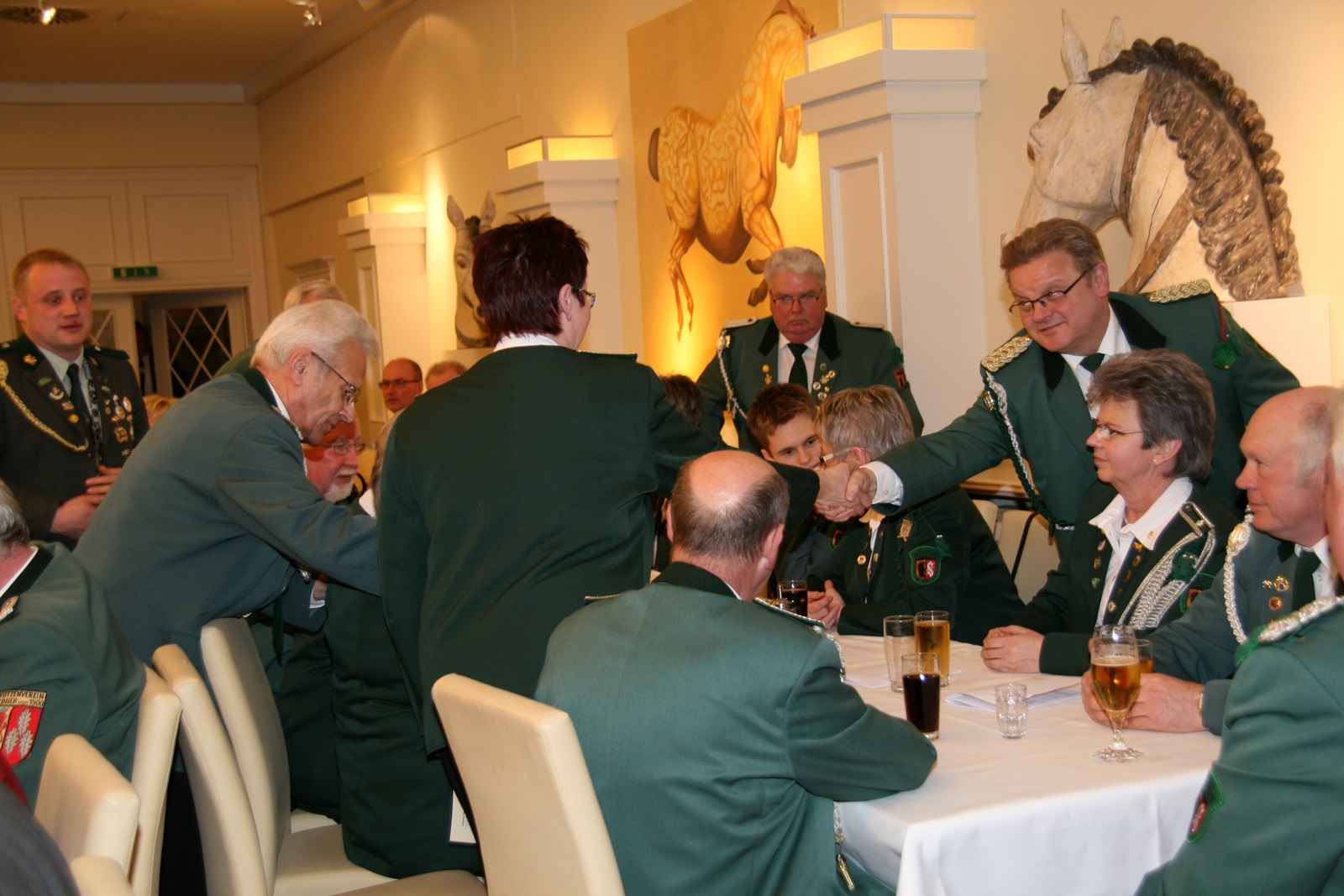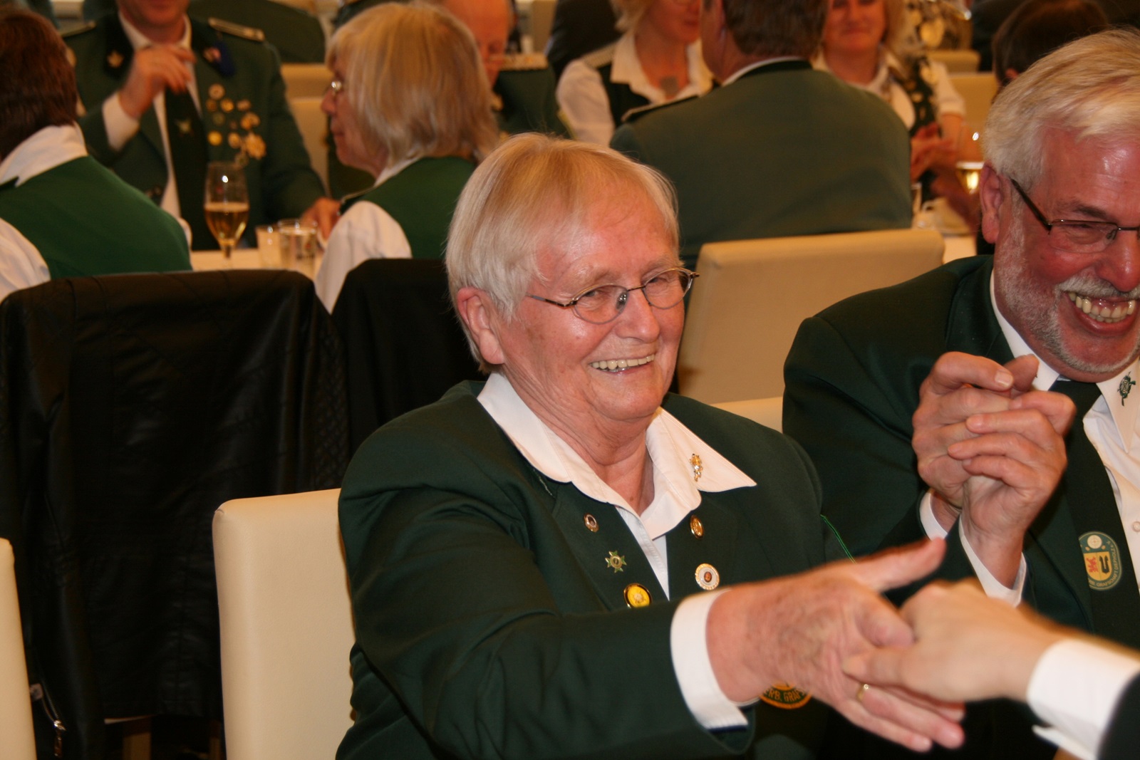 Eine Überraschung gab es für Friedel Kelkenberg auf der Feier anläßlich seines 70. Geburtstages: Präsident Karl-Friedrich Scharrelmann überreichte ihm den Ehrenbrief des Nordwestdeutschen Schützenbundes.