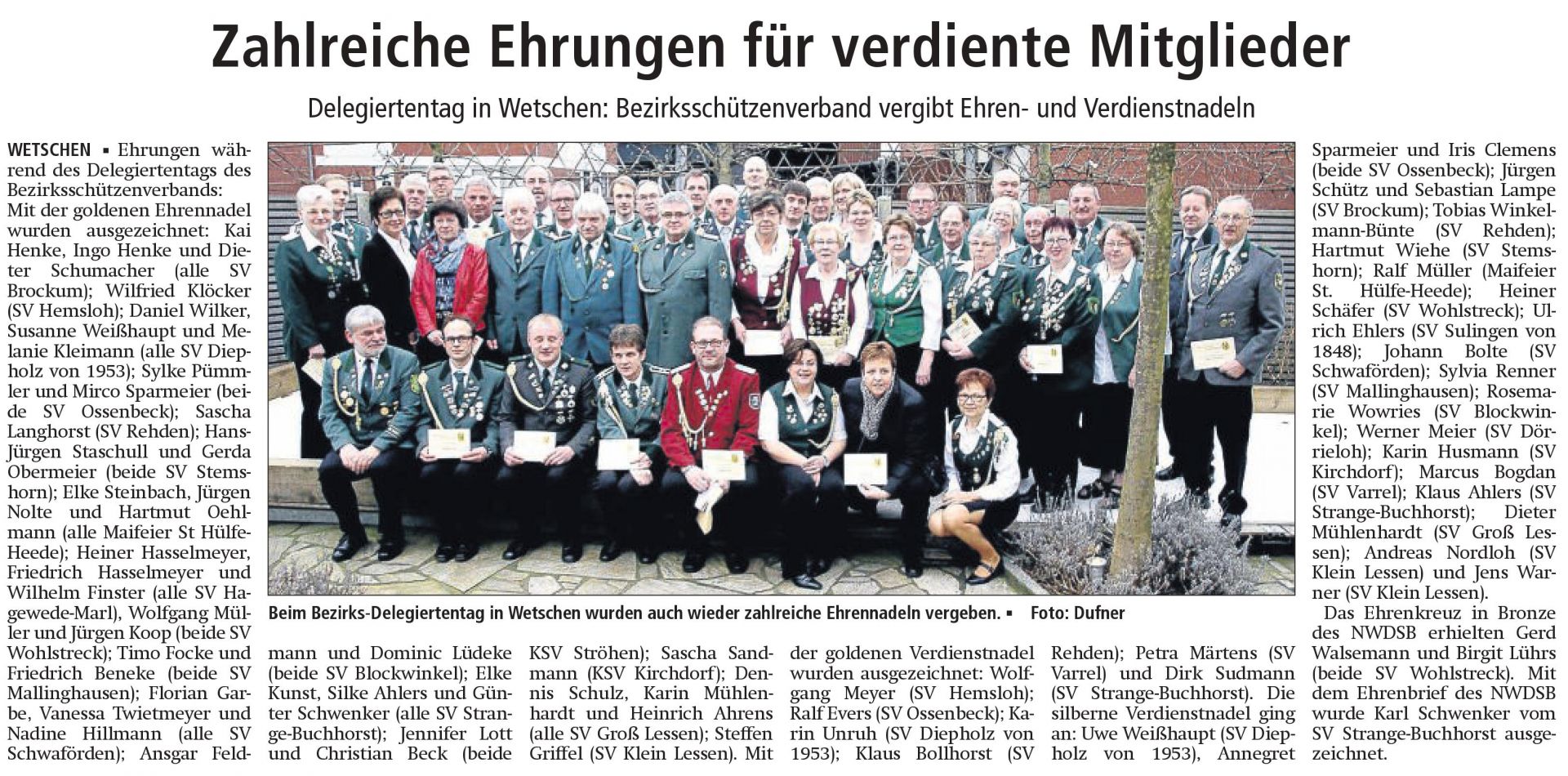 Leider hat der Redakteur (nicht Reinhold Dufner) der Kreiszeitung wohl in den falschen Ordner gegriffen, denn die Namen der Geehrten sind die vom vergangenen Jahr. (Schaut bitte in die aktuelle PDF-Ehrungsliste unter dem Foto nach)