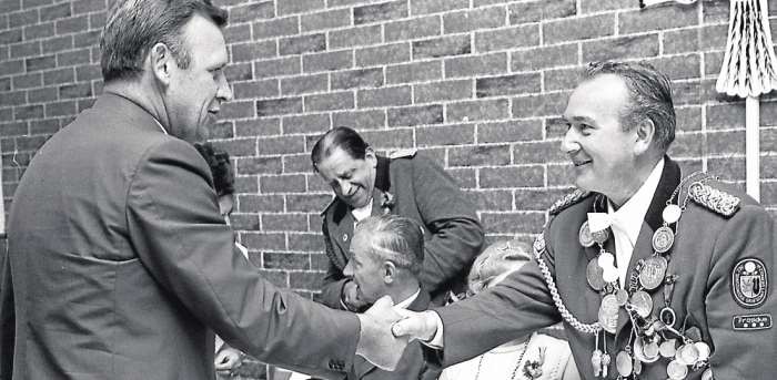 Gründungsvater Otto Heuer war 1969/1970 König im SK Diepholz, der damalige Landrat Heinrich Jürgens gratulierte ihm zur Königswürde.(Foto: R. Dufner)