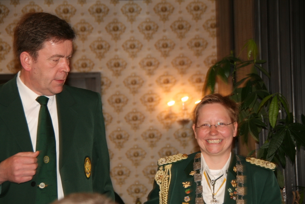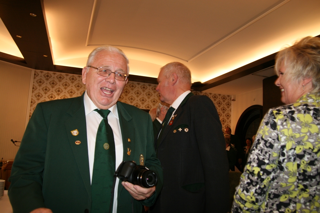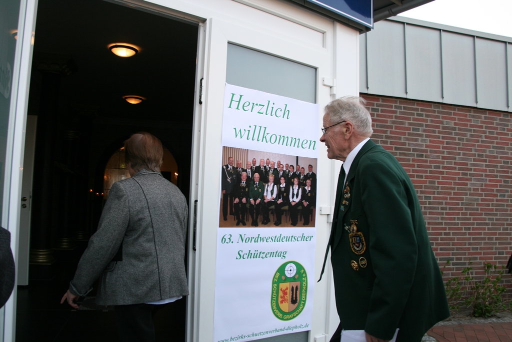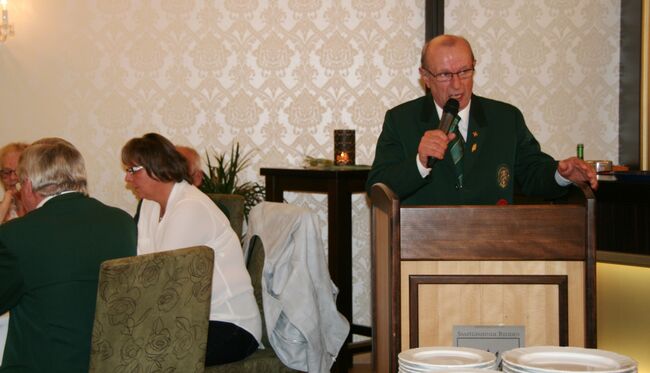NWDSB-Präsident Jonny Otten begrüßte anschließend eine große Anzahl von Ehrengästen, unter ihnen DSB-Präsident Heinz-Helmut Fischer und Gattin, Brigitte Jeglorz als Bundesbeauftragte des Deutschen Schützenbundes, und natürlich auch die "Noch-Landesmajestäten" des NWDSB. Einige Vertreter aus befreundeten Landesverbänden, Vertreter aus der Industrie und Ehrenmitglieder aus dem NWDSB. Er freute sich, dass sie am heutigen Abend an dieser Veranstaltung teilnehmen. Er wünschte allen einen guten Aufenthalt hier in der Gemeinde Rehden und am morgigen Samstag bei der Feierstunde, dem Delegiertentag und dem abschließenden Landeskönigsball, viel Spaß.