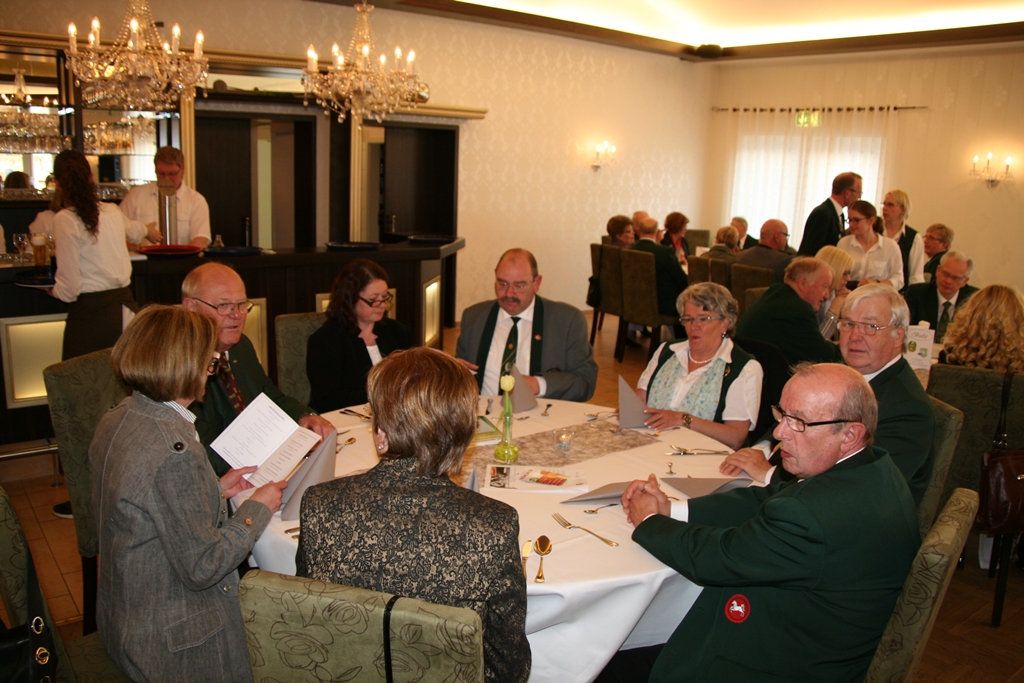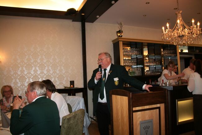 Bezirkspräsident Karl-Friedrich Scharrelmann begrüßte am 10. April 2015 alle recht herzlich in Rehden zum traditionellen "Kontaktabend" vor dem Landesdelegiertentag. Als "heimische" Ehrengäste begrüßte er recht herzlich Samtgemeindebürgermeister Hartmut Bloch, Stellvertretenden Bürgermeister der Gemeinde Rehden sowie Wilhelm Evers, Ehrenpräsident des SV Rehden und ehemaligen stellvertretenden Landrat, der noch immer sehr mit unserem Schützenwesen verbunden ist. Wir haben ein sehr umfangreiches Programm ausgedacht. Er wünschte allen hier ein paar schöne gesellige Stunden mit guten Gesprächen.