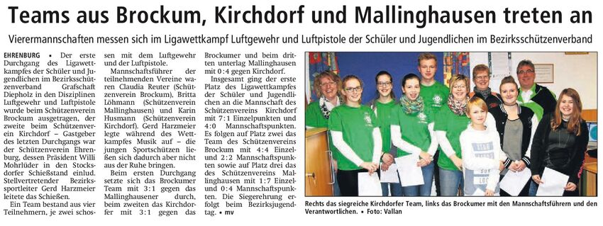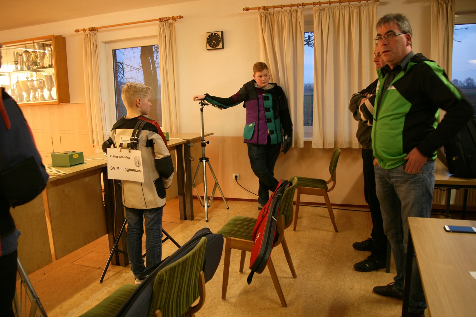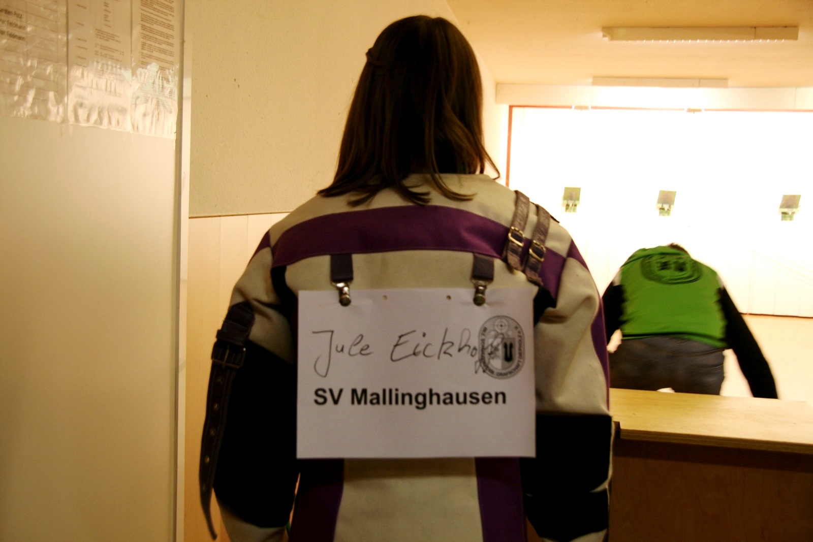 Die Mannschaftsführer der beiden Vereine, Britta Löhmann vom SV Mallinghausen und Karin Husmann vom SV Kirchdorf betreuten ihre Schützlinge. Britta Löhmann hatte als „Leihgabe“ für Jendrik Stühring, der für Nicolas Bockhop (krank)Luftpistole schoss, Jule Eickhoff vom SV Blockwinkel ausgeliehen, diese vertrat Jendrik mit einem Ergebnis von 157 Ringen mit dem Luftgewehr hervorragend.