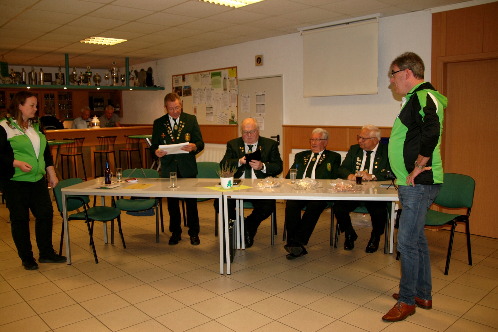 Siegfried Brockmann verlas dann die Namen der Platzierten, Britta Löhmann und Gerd Harzmeier überreichten den glücklichen Siegern ihre Nadeln für ihre super Leistungen beim Rundenwettkampf und für die Bezirksmeisterschaft 2019.