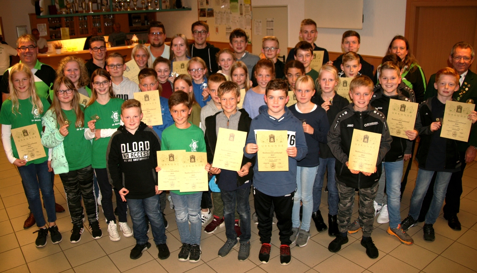 Zur Siegerehrung des Rundenwettkampfes und der Bezirksmeisterschaft 2019, hatte Bezirkssportleiter Siegfried Brockmann die jungen Sportschützen eingeladen. Eingangs begrüßte er alle Jugendlichen mit ihren Betreuern und auch Eltern herzlich, freute sich, dass sie trotz der "Baustellen" doch ohne große Verzögerung zum Stand des Schützenvereins von 1848 Sulingen kommen konnten. Ebenso begrüßte er seine Unterstützer Jugendsportleiterin Britta Löhmann, seinen Stellvertreter Gerd Harzmeier, Bezirkspräsident Karl-Friedrich Scharrelmann und dessen beide Vizepräsidenten Friedel Kelkenberg und Günter Herzig sowie Pressewartin Marianne Vallan. Dem gastgebenden Verein dankte er für die Bereitstellung der Räumlichkeiten und die Verpflegung. Erläuternd sagte er, dass man die Siegerehrung der Jugendlichen vorgezogen habe, um den Zeitrahmen des eigentlichen Bezirksjugendtages am 2. November beim SV Kirchdorf etwas zu lockern.